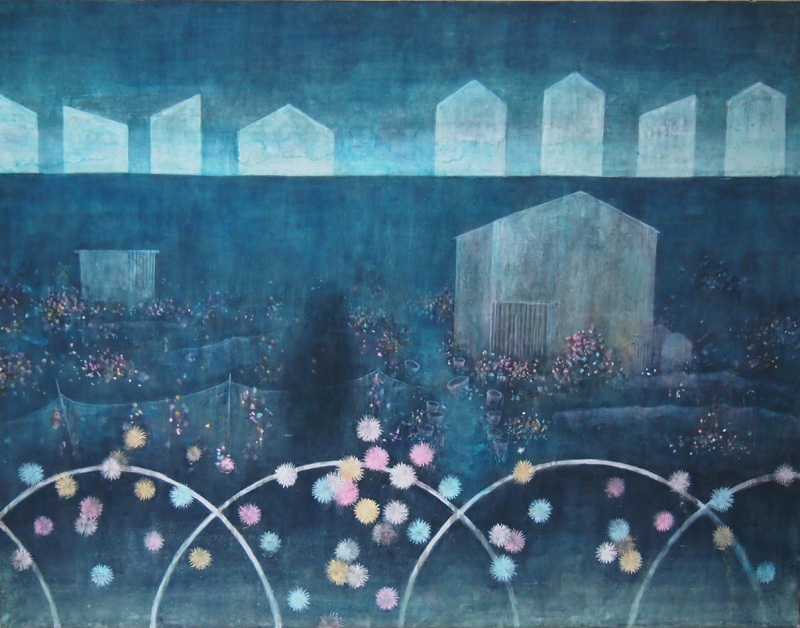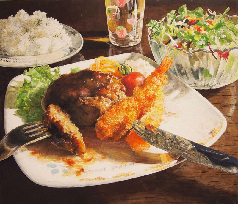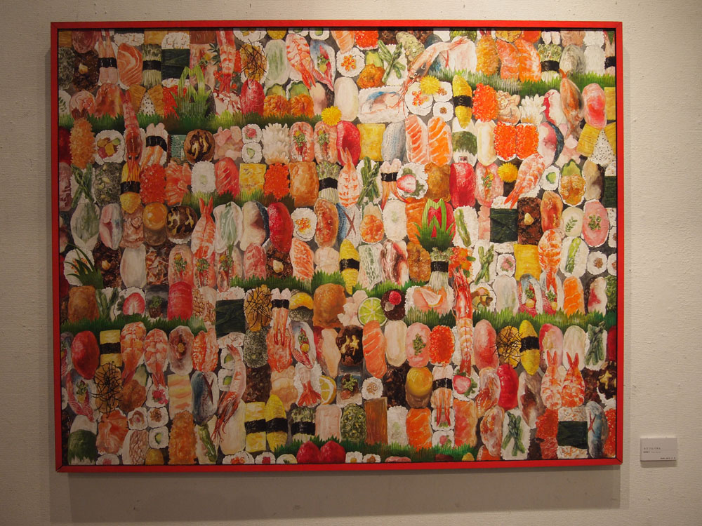 On Sunday I happened upon an art exhibit at Gallery Le Deco ギャラリー・ルデコ in the Shibuya area of Tokyo. On the 3rd floor I was fortunate to come across vibrant and uplifting work from several young artists, most/all of whom are art students in Tokyo. The exhibit was titled t√5. ひとよひとよににほんがてん, which is far too complex for google to translate properly…I get “Ten books in the world one person I”. The artists: Hideshi Ito 伊藤秀司, Hiromitsu Saitou 齋藤弘光, Yusuke Yamashita 服部桜, Sakurako Hattori 山下由介, Akiko Hashimoto 橋本晶子.