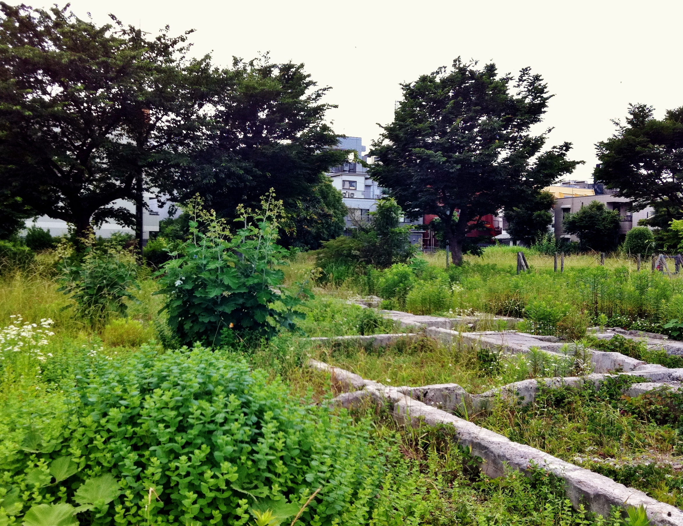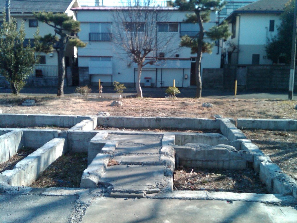 In February I stumbled through the tightly packed streets south of Chitose-Karasuyama station and into an open patch of ground dotted with dilapidated houses and scarred by the foundations of extinct homes. Open land in Tokyo exists but always with a clear purpose: park, garden, parking lot…this land was altogether different. These were the remains of the Karasuyama apartment complex 烏山第一団地. The complex goes by many names, all of which are listed at the bottom of this post. The mostly demolished complex is one of the earliest examples of danchi 団地 “group/team land”, large clusters of apartments that gained in popularity in the 1950’s. The details: