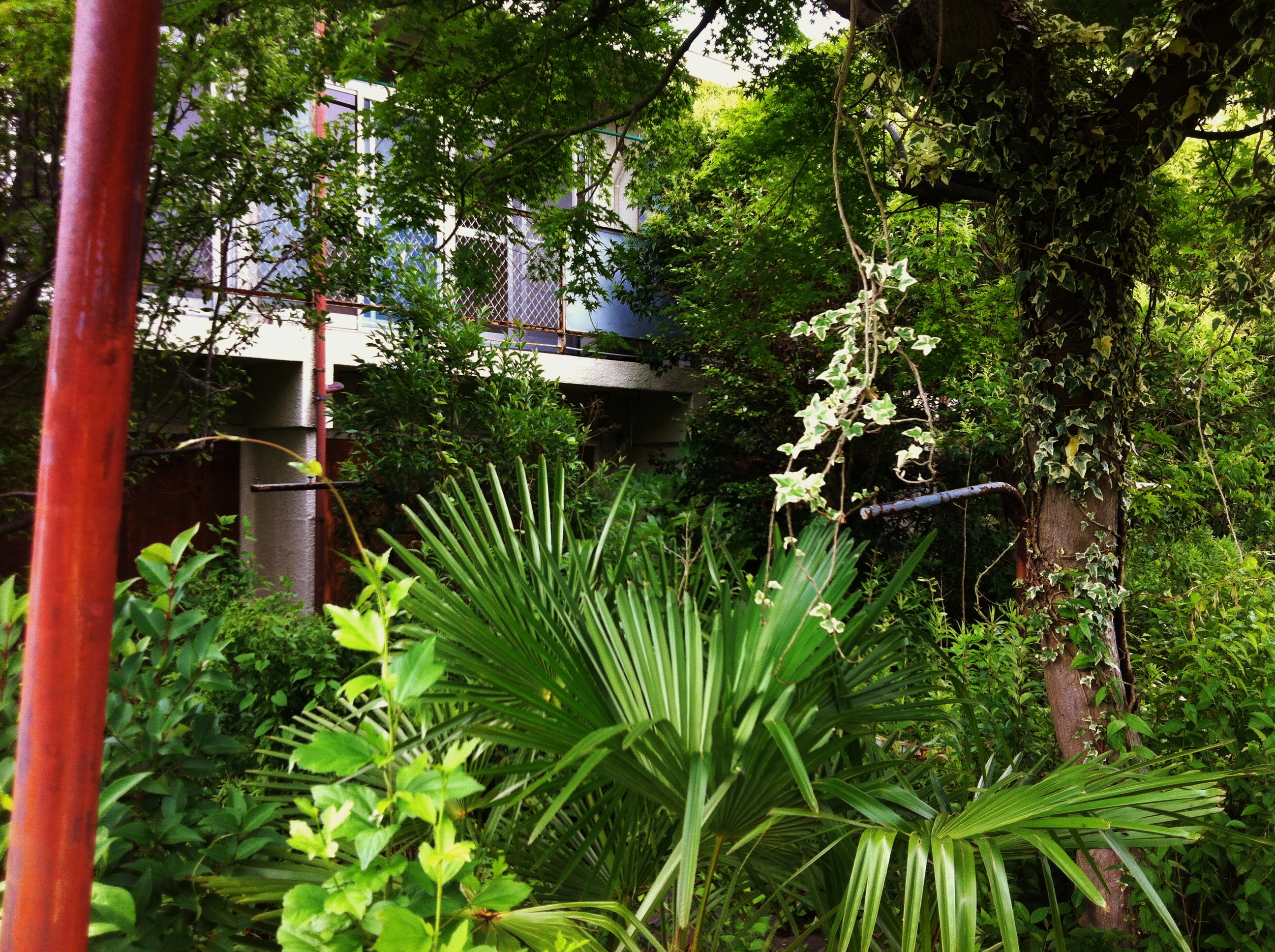 Demand for housing in post-WWII Tokyo led to innovations in land use and construction. This period of reconstruction 戦後復興期~公営住宅の登場 was shaped by the Government Housing Loan Corporation (GHLC) 住宅金融公庫 , founded in 1950 and responsible for financing 30% of Japanese houses built between the end of WWII and 2002 (19 million units out of 58 million). The Karasuyama complex was built in 1958 and either designed by or modeled after designs by Kunio Maekawa 前川國男, an architect who studied with Le Corbusier from 1928-1930 and became influential in the post-war era (source). The complex’s Building 22 has been described as one of this Maekawa’s signature daichi designs, I suppose for its functionalism, ease of construction, and clean aesthetic.