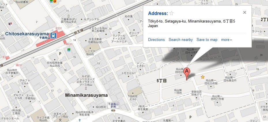 - Minamikarasuyama, Setagaya-ku, Tokyo 東京都世田谷区南烏山 5丁目5−5