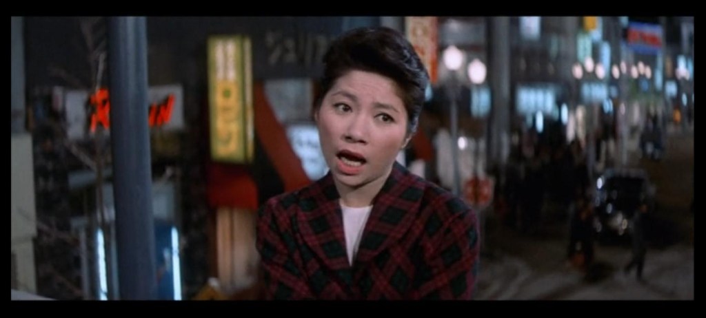 Is Ginza Love Story 銀座の恋の物語 the Japanese Breakfast at Tiffany’s? Not particularly. But some similarities tempt me to push the comparison further. Both films portray protagonists struggling to make ends meet in the big city, sometime resorting to illegal means. Both films depict the energy and excitement of city living. And both films make liberal use of a schmaltzy love song (Moon River for Breakfast at Tiffany’s, and Ginza Love Story 銀座の恋の物語).