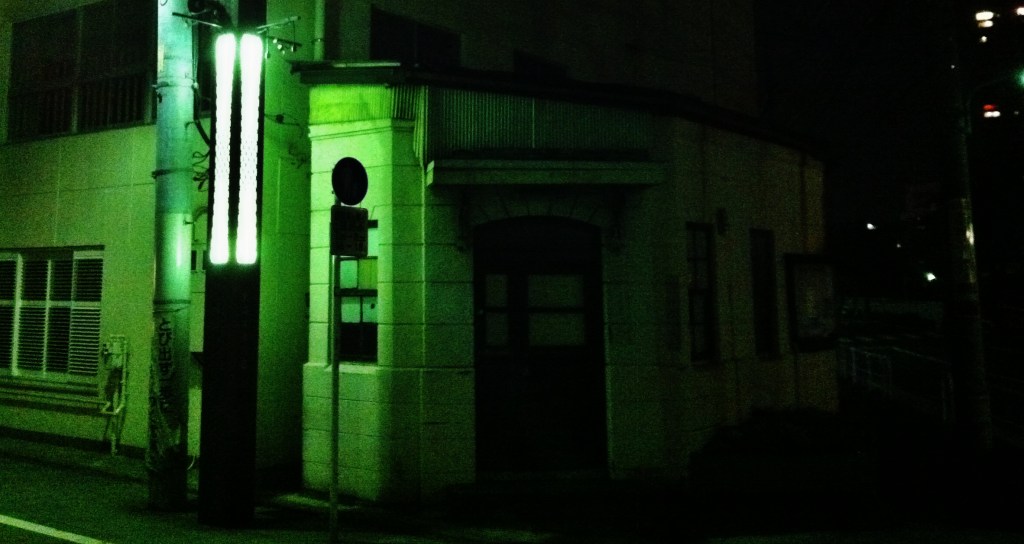 Leaving my apartment at 1:30 a.m. I have almost 11 miles to cover, which should take less than 3 hours if I keep a steady pace. From Shibakoen 芝公園 (0) it’s a straight shot above the Mita Line to Tamachi Station (1), a giant of the Yamanote circuit rendered powerless by the early morning calm. I pass through the empty station and onto the man-made islands of Shibaura 芝浦 3-chome and 4-chome. So far I’m in familiar territory, but crossing into Kōnan 港南 1- chome the houses and restaurants give way to the massive Shibaura Water Reclamation Center 芝浦水再生センター (2).