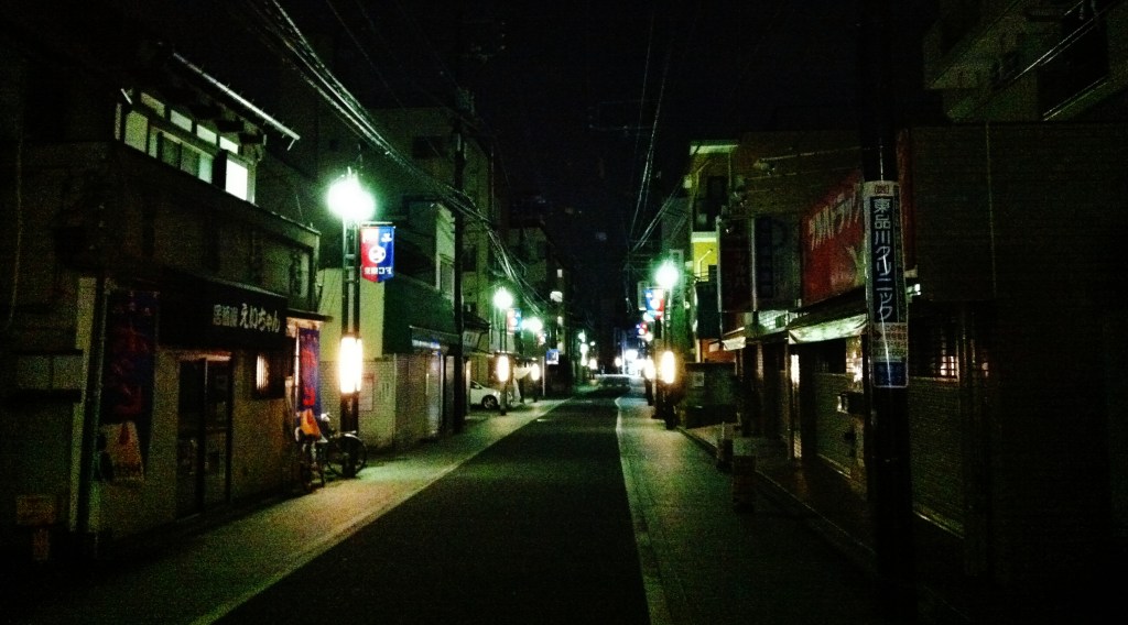 It’s now 11:30 p.m. and I’m not packed, so I won’t have time to catch the last train and stay at Haneda overnight, which is common for early flights. And I certainly don’t want to pay $75 bucks for a taxi because even though I’ll gladly spend that on beer I still can’t stomach that much for a cab. So I decide on the only sensible course of action…go by foot. Aruite! 歩いて!