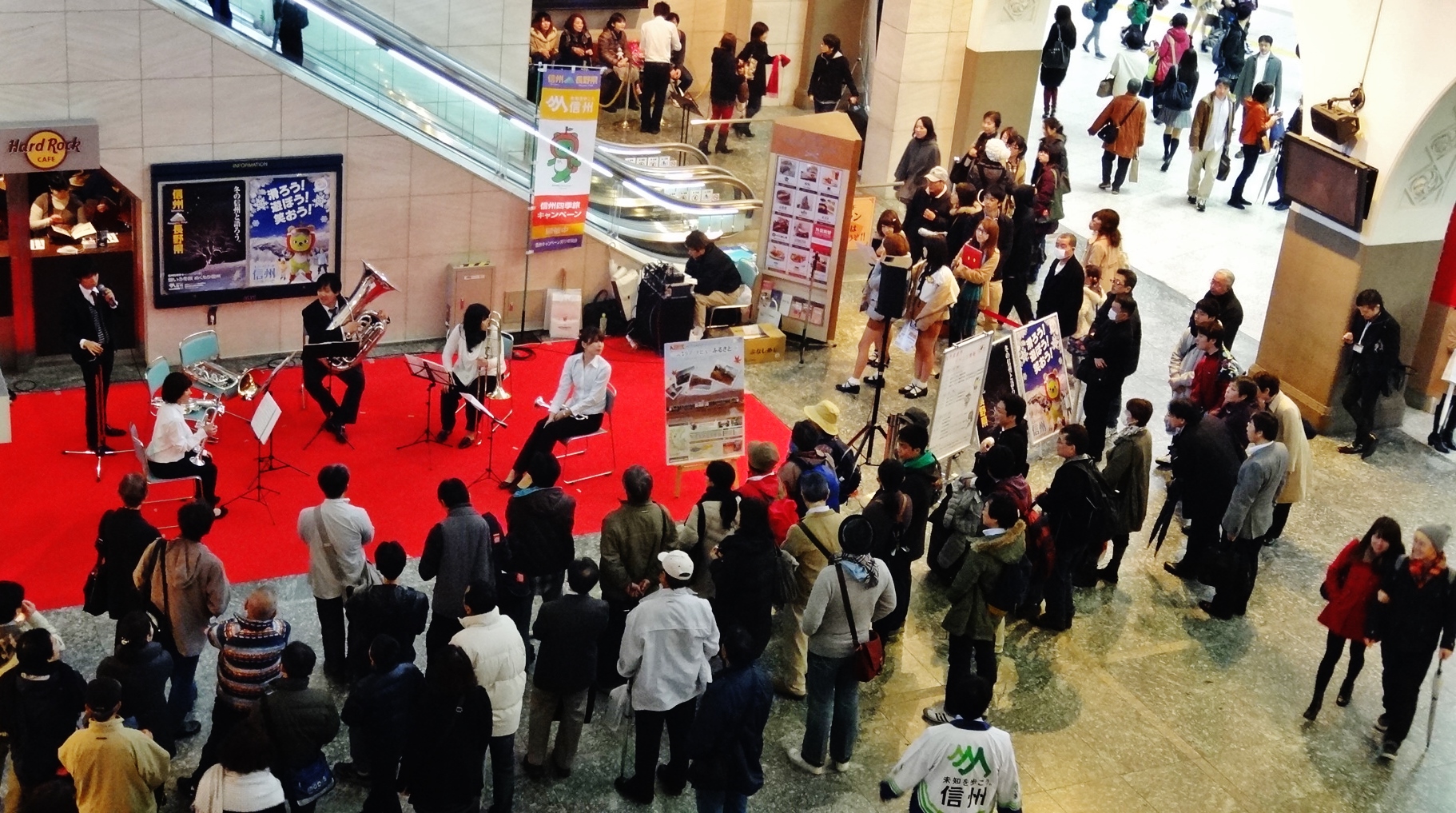 A Christmas concert by a small brass band in Ueno Station, Tokyo, Japan.