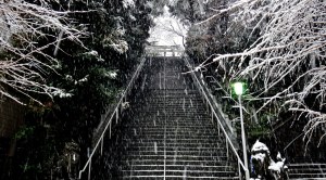 The steep and long staircase that leads to Atago Jinja (shrine) 愛宕神社, near Kamiyacho. See: Another snowy day in Tokyo 東京の別の雪の日