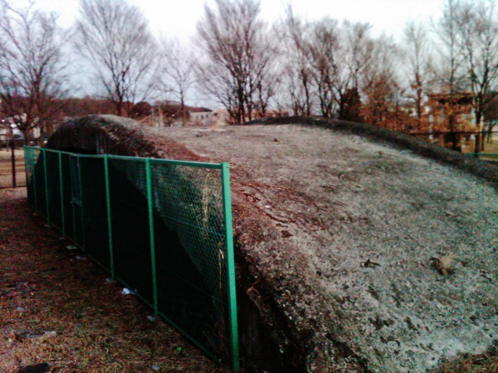 Eight miles southeast of the Hitachi substation is the last stop on our journey, home of two airplane bomb shelters, the Wartime Concrete Aircraft Hangars “OHSAWA 1 & 2” 掩体壕大沢1号、2号. The site, Tokyo Chofu Airfield 調布飛行場, opened in 1941 to provide air defense against B-29 attacks, equipped with Kawasaki Ki-61 Hien “flying swallow” fighters キ61三式戦闘機「飛燕」. As the end of the war drew closer, the Japanese increasing prepared their homeland for an expected invasion. Thirty concrete hangars were constructed in 1944 to protect the “flying swallows”. Short on manpower, construction was aided by a local gardening group and junior high students, according to signs at the park.
