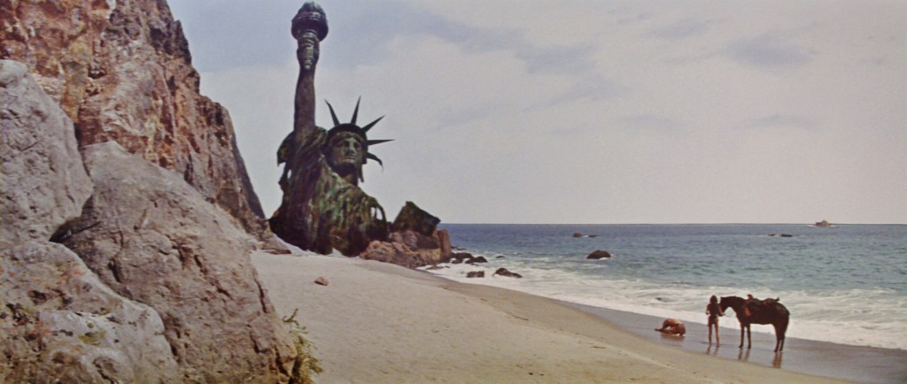 In the greatest film ending of all time, Charlton Heston collapses in despair upon seeing the Statue of Liberty half-buried in sand, instantly realizing that the Planet of the Apes is, after all, Earth.  Imagine how less dramatic this climax would be had it taken place in the great ape library, Heston reading the troubling news in a dusty textbook. Words have power, but objects have objectivity.