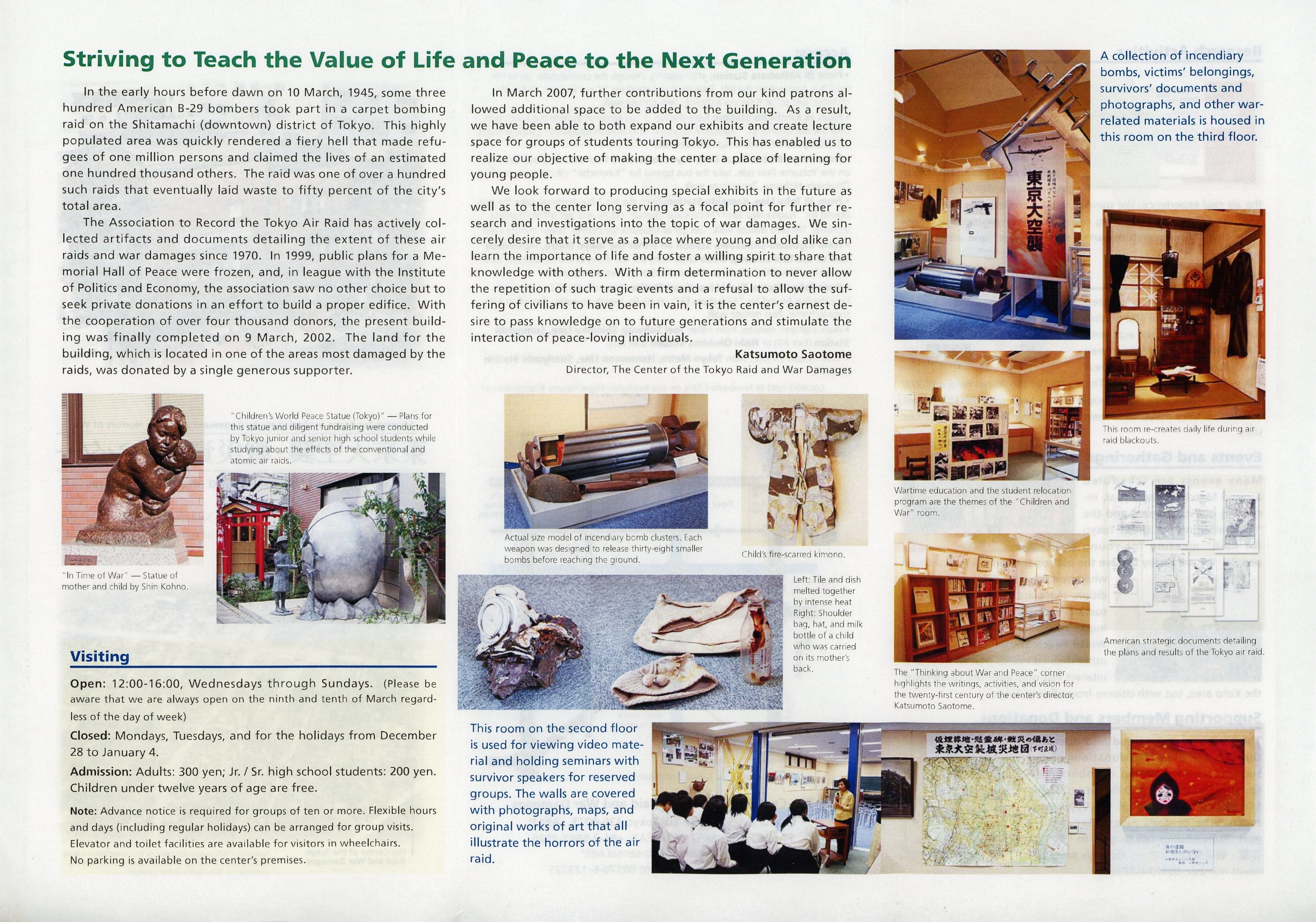 Brochure for The Center of the Tokyo Raid and War Damages 東京大空襲・戦災資料センター. See: Tokyo’s archaeology of World War II 東京の第二次世界大戦の考古学 (WW2 sites)