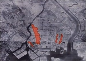 Red indicates location of the fires that engulfed Koto-ku Tokyo during Allied bombing raids. (This is part of a time-lapse series). See: Tokyo’s archaeology of World War II 東京の第二次世界大戦の考古学 (WW2 sites)