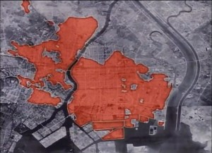 Map of Allied firebombing damage in Tokyo, centered on the Koto-ku district. See: Tokyo’s archaeology of World War II 東京の第二次世界大戦の考古学 (WW2 sites)