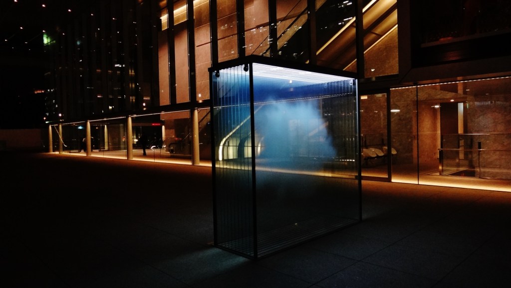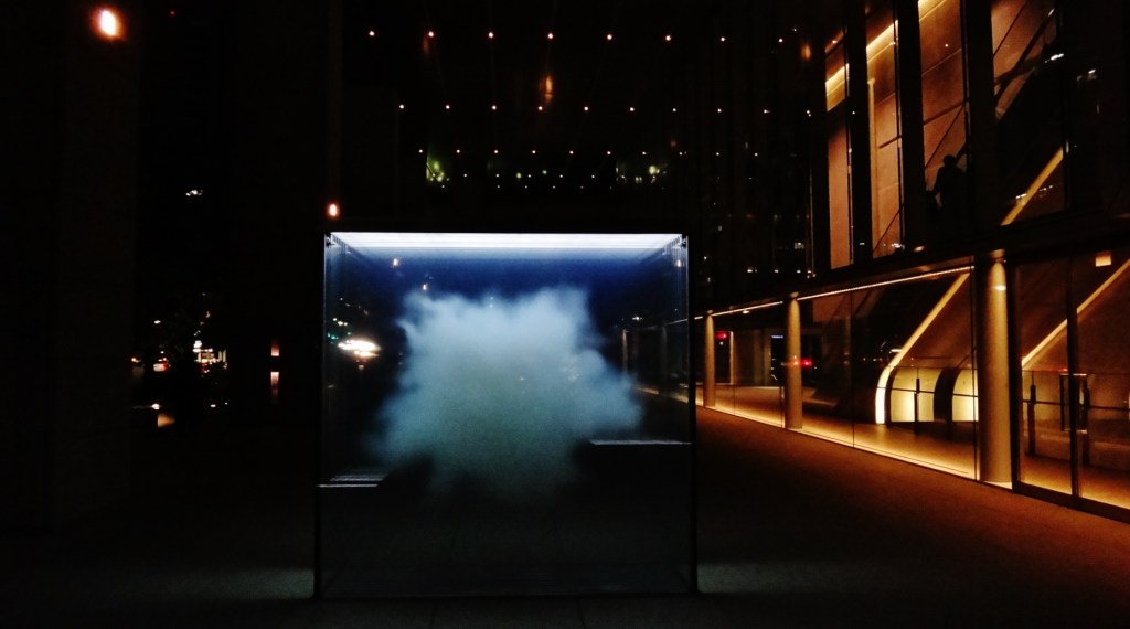 Update: just learned that the sculpture is “Cloud”, by Leandro Erlich レアンドロ・エルリッヒ, an Argentinian artist whose work is currently on display at the Mori Museum (November 2017 – April 1, 2018). He also created the famous and fabulous swimming pool sculpture at the Kanazawa Museum of Contemporary Art: