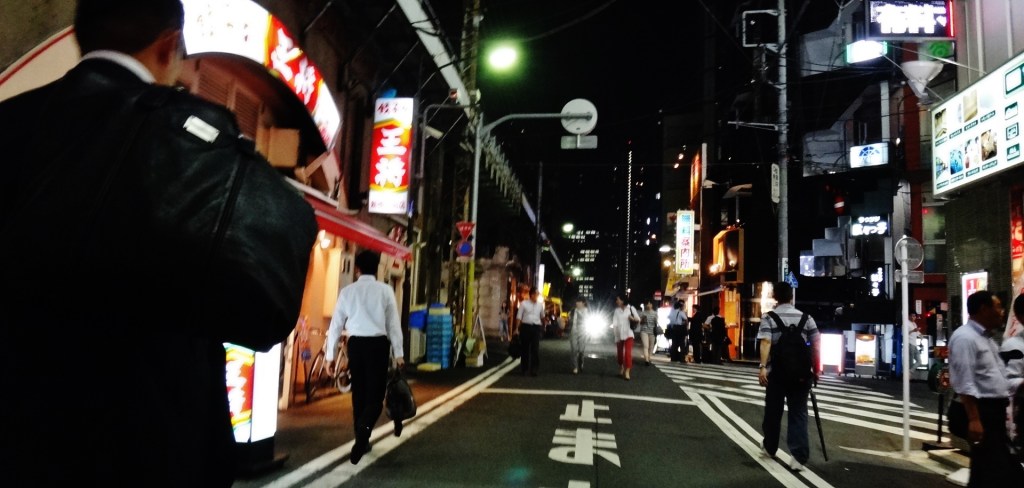 There’s something about walking through Shimbashi on a warm summer night that makes me pull out the camera and start shooting from the hip. It’s getting late for a work night and people are starting to head home, but there’s still a buzz of energy in the air, which is only heightened by the warm and humid late-June weather.