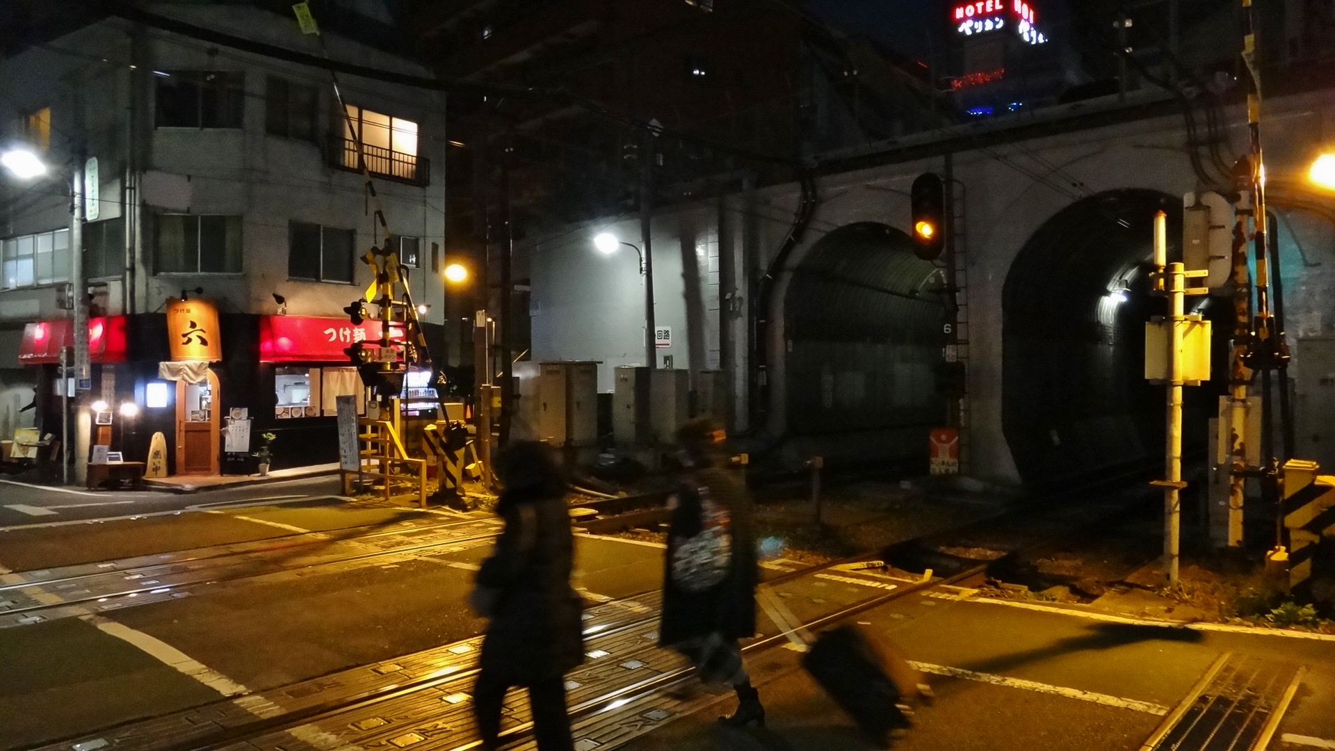 Women crossing the train tracks outside the tunnel near Shinsen Station 神泉駅. Situated on the backside of “Love Hotel Hill” in Shibuya’s Dōgenzaka 道玄坂, Shinsen is only half a mile from Shibuya crossing, yet feels as quiet as the other stations on the Keio Inokashira Line 京王井の頭線.