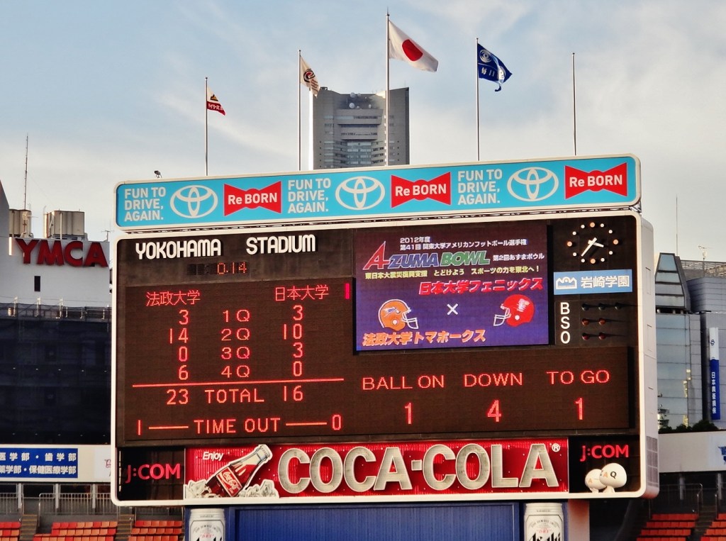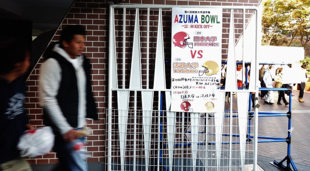 If you prefer college football, then check out the Kanto League. Not only are the team names fascinating (Kanagawa University Atoms, Musashi Institute of Technology Helios*, Saitama University Primrose), but the level of play and fan excitement is impressive, at least according to the Azuma Bowl, which I watched last November. The Hōsei University Tomahawks led for most of the game, and had built a 23-16 advantage with 5:27 to play. Tthe Nihon University Phoenix looked doomed, especially since their offense hadn’t found the endzone since the 2nd quarter. Somehow, Nihon University marched down the field and found themselves on the goal line facing 4th down. My friend and I were sitting in the Nihon University student section and were just as nervous as the undergraduates who surrounded us. The Phoenix lined up for the final play with 14 seconds to go. First the snap, then the hand-off, and then…touchdown!!! I hugged the student next to me. We looked at the scoreboard to confirm that Nihon was down 1 point, with the perfunctory extra-point to follow. Overtime was just around the corner. Still giddy from the touchdown, I watched the teams line up for the kick. The snap, the kick. No good. Game over. Nihon lost. Sports are cruel. The final score remained: Hōsei University Tomahawk 23 – 22 Nihon University Phoenix.