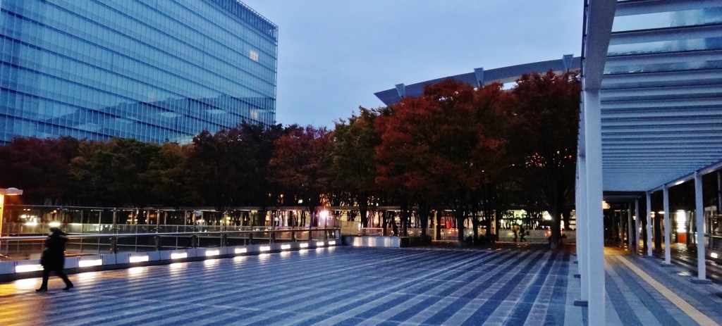 This is the Japan I had been expecting: mega-structures, bold urban design, a de-humanizing city of the future. Saitama Super Arena さいたまスーパーアリーナ and Saitama Shintoshin Station さいたま新都心駅 are not built for the human scale; yet between these concrete and steel monsters, hundreds of trees grow, arranged in a large grid, providing physical and spiritual shelter to the people walking underneath. This is the Keyaki Hiroba Plaza けやきひろばプラザ, or Saitama Sky Forest, although I’ve seen it given many names. (1)
