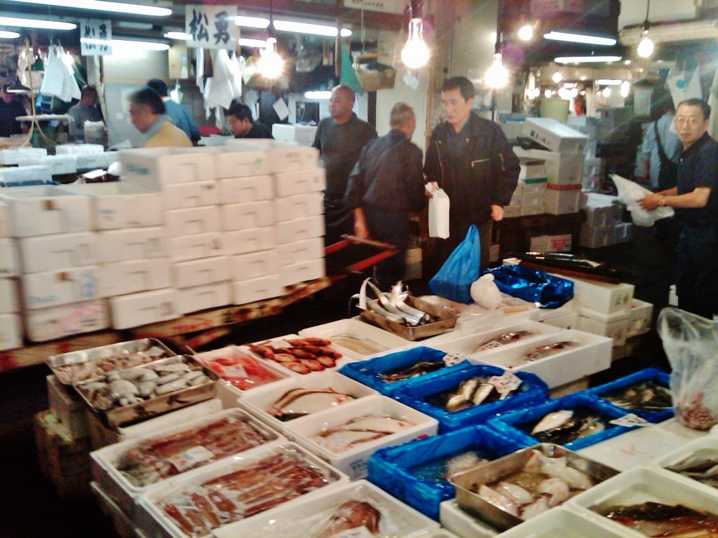 Updated September 15,2018: this post provides information about the old Tsukiji Market that is now, I believe, closed. The new market will open in across the river in Toyosu. See: Tsukiji Market, R.I.P. (goodbye to the curve)