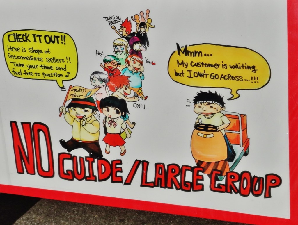 Because Tsukiji was not built for tourists, you need to pay attention to your surroundings and be cognizant of the people who work there. There are fast-moving carts, razor-sharp knives, buzzsaws, and other dangerous objects. Photos should be taken quickly, and, above all else, tourists should avoid blocking the aisles and intersections. In addition to my tips, there are several rules posted outside the market. Please take note: