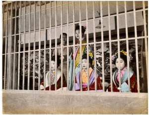 Bordello workers on display in the Edo-era brothels of Tokyo, circa 1890. See: A walk in the sex park: Yoshiwara and the Tokyo bordello