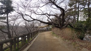 A low-hanging branch, wrapped in yellow warning tape, on a dirt path above Yotsuya station. From here you can hear the Maranouchi and Chuo lines that run below. Looking west, at night, you can see the lights of the Shinjuku skyscrapers. When I’m on that path, in the middle of a run, at night, warm, sweaty, knowing no obligations or worries…that’s when I feel I’ve got life all figured out. See: Yotsuya: Wisdom on the hill 山の上の上智 (1955, 2013)