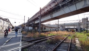 Grass grows around the train tracks at JR Hama-Kawasaki station 浜川崎駅. The station isn’t abandoned, despite its appearance. See: Visit beautiful Kawasaki! (You can’t get there from here!) かわいい川崎に行こう