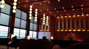 Lobby of the mid-century contemporary Hotel Okura in Tokyo. The hotel is a beloved symbol of Japan’s postwar rise to and was controversially slated for major renovations in 2015.
