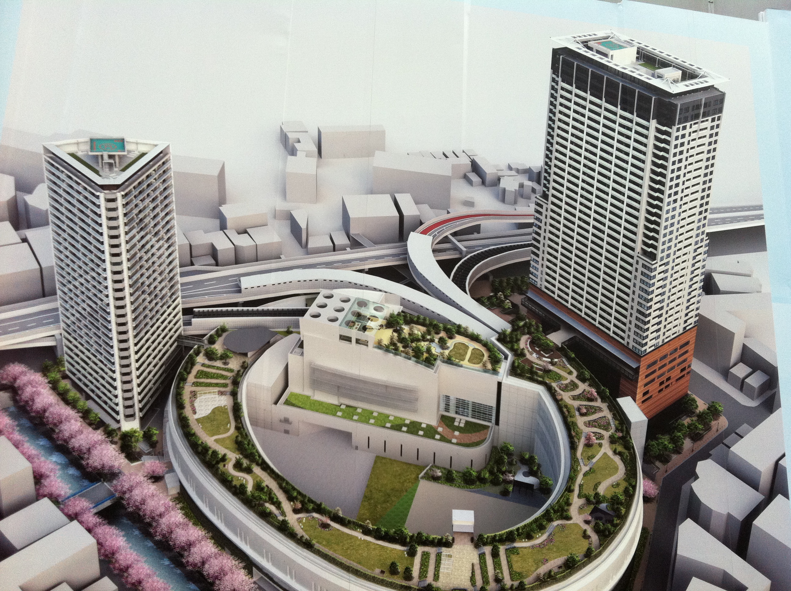 Construction of the Ohashi Cross-Air Tower Highway interchange building / Meguro Sky Garden. See: Planting rice on the highway: Ohashi Green Junction