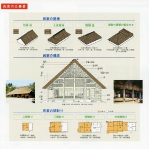 Illustration of old Japanese house thatched roof construction and floor plans. From a brochure at the Japan Open-Air Folk House Museum / 川崎市立日本民家園 (Kawasaki Municipal Nihon Minka-en), not far from Tokyo. See: Japan Open-Air Folk House Museum (Kawasaki City)