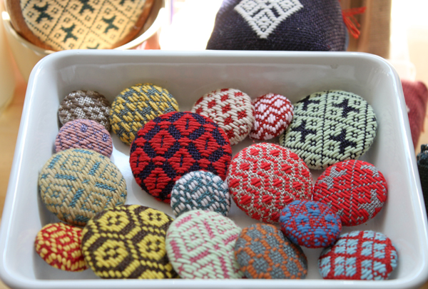 - Kogin-zashi こぎん刺し: traditional embroidery from Aomori 青森県 – the picture below shows wrapped/covered buttons using the methods. Google translates こぎん刺し as “concentrated silver stab”. I’m a fan already.