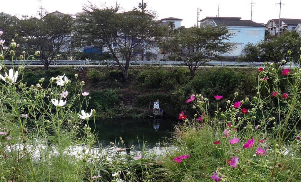 Sendaiborigawa fishing park せんだいぼりがわこうえん (map) is a humble oasis in the flat, canal-bound expanse of Koto-ku. I walked by one sunny day and was too considerate (or embarrassed) to take photos of the old men as they enjoyed their weekend fishing. Here’s a pic from a relatively quiet day at the pond (source):