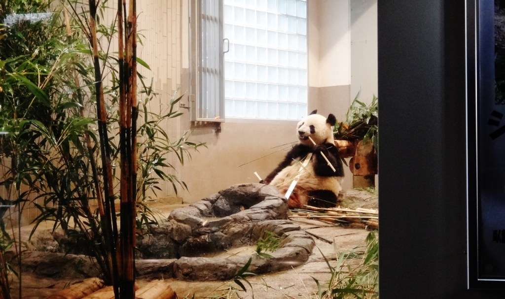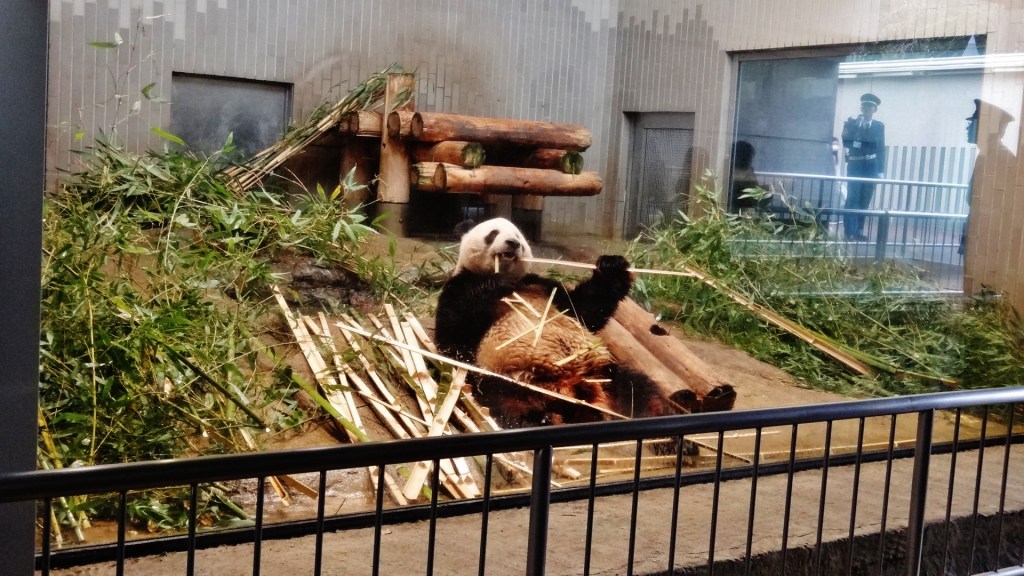 I titled this post “Chewing on Tokyo’s bamboo forests”, so in the interest of accuracy, here are two picture of the pandas in Ueno Park Zoo eating bamboo. They really act like pigs when it’s meal time.