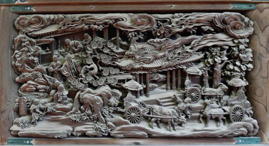 Shibamata Taishakuten is home to incredibly detailed wood carving protected by a glass facade.
