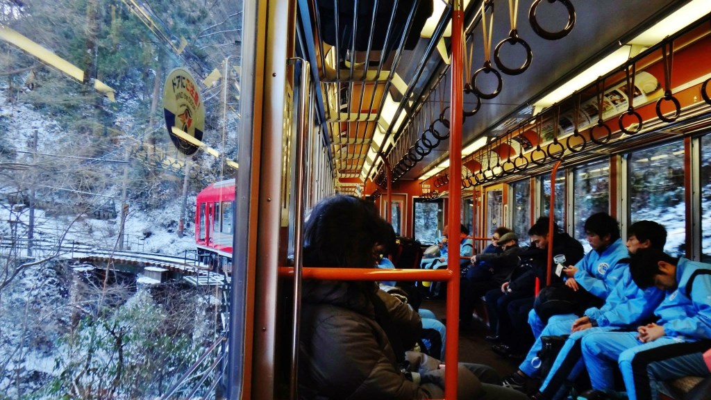 Sharing a ride on the Hakone Tozan Line with one of the Hakone Ekiden race teams: