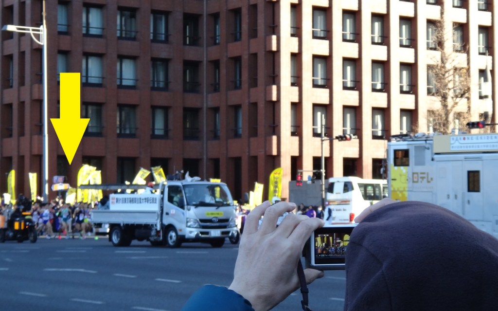 We stood along the course near Tokyo Station, not long after the runners had started. We had planned to follow-along by train to the 1st transition point, but were surprised that we wouldn’t be able to reach the Tsurumi relay station before the runners. According to Google Maps, it takes 46 minutes to take a train (including walking time) from the start of the race to the Tsurumi relay station; in comparison, the fastest runners travel this distance in 61 minutes, a cushion of just 15 minutes if you leave IMMEDIATELY after the start of the race. My friend and I decided to bypass the 1st relay point and headed to the second relay station.