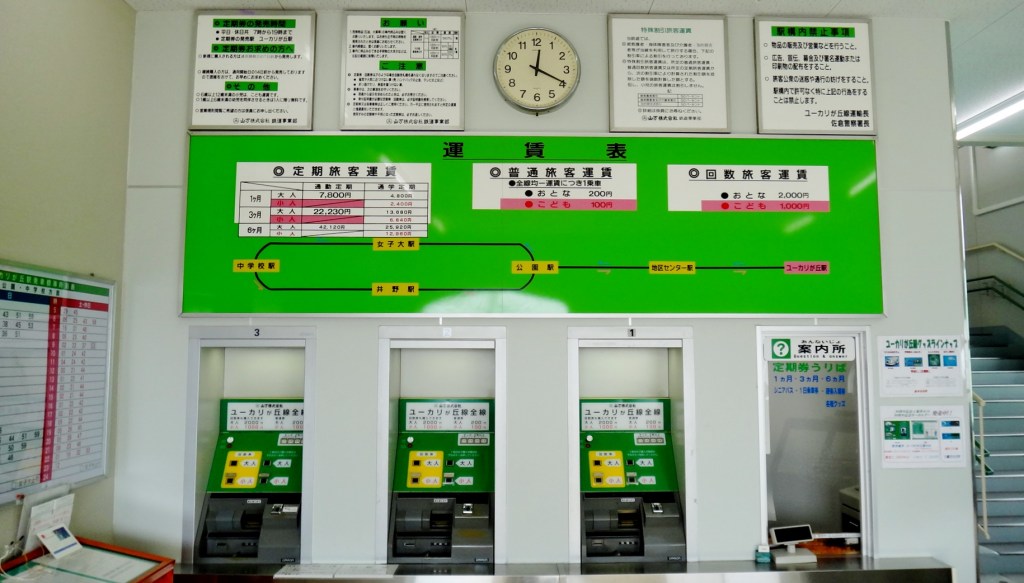 Rakutenchishita (lower) Station ラクテンチ下駅: this is the bottom terminal of the Beppu Rakutenchi Cable Line 別府ラクテンチケーブル線, a funicular serving Beppu Rakutenchi ラクテンチ, an amusement park in that originally opened in 1929 as 「別府遊園」. According to Wikipedia, this line is technically considered “public transportation”, but riders are required to pay park admission in order to ride the cable line. At the top of the hill is Rakutenchi upper station ラクテンチ上駅.