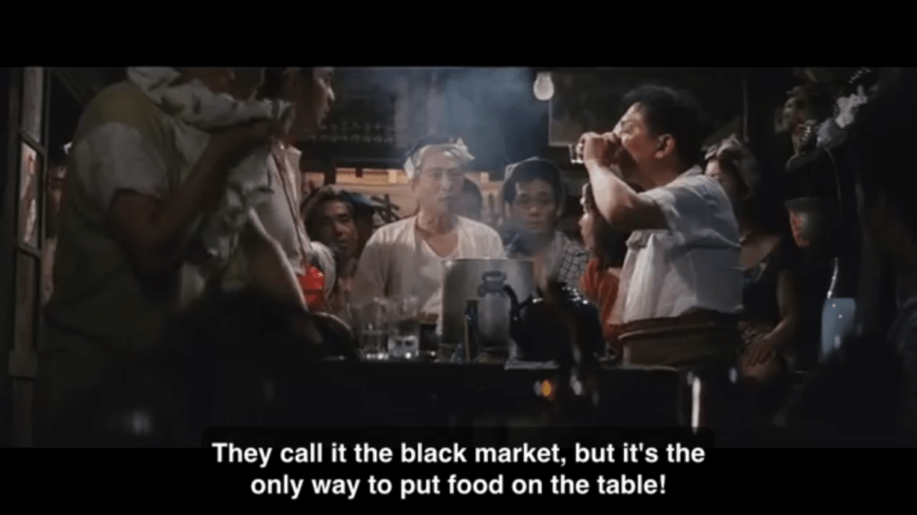 Wikipedia: the Shibuya incident 渋谷事件, a violent confrontation in June 1946 between rival gangs near Shibuya Station. In the chaos of the post-war recovery large and very lucrative black markets opened throughout Japan. Various gangs fought for control over them. There were also many non-Japanese “third nationals” in post-war Japan. These “third nationals” or “third-country people” were former subjects of the Japanese Empire whose citizenship then transferred to other countries like China and Korea. The Shibuya incident involved former Japanese citizens from the Japanese province of Formosa (Taiwan) fighting against native Japanese Yakuza gangs. After the fight, the Chinese nationalist government (Kuomintang) stepped forward to defend the Formosans.
