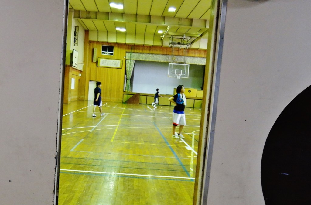 Remnants of the old school: gymnasium still in-use, and a rooftop athletic space