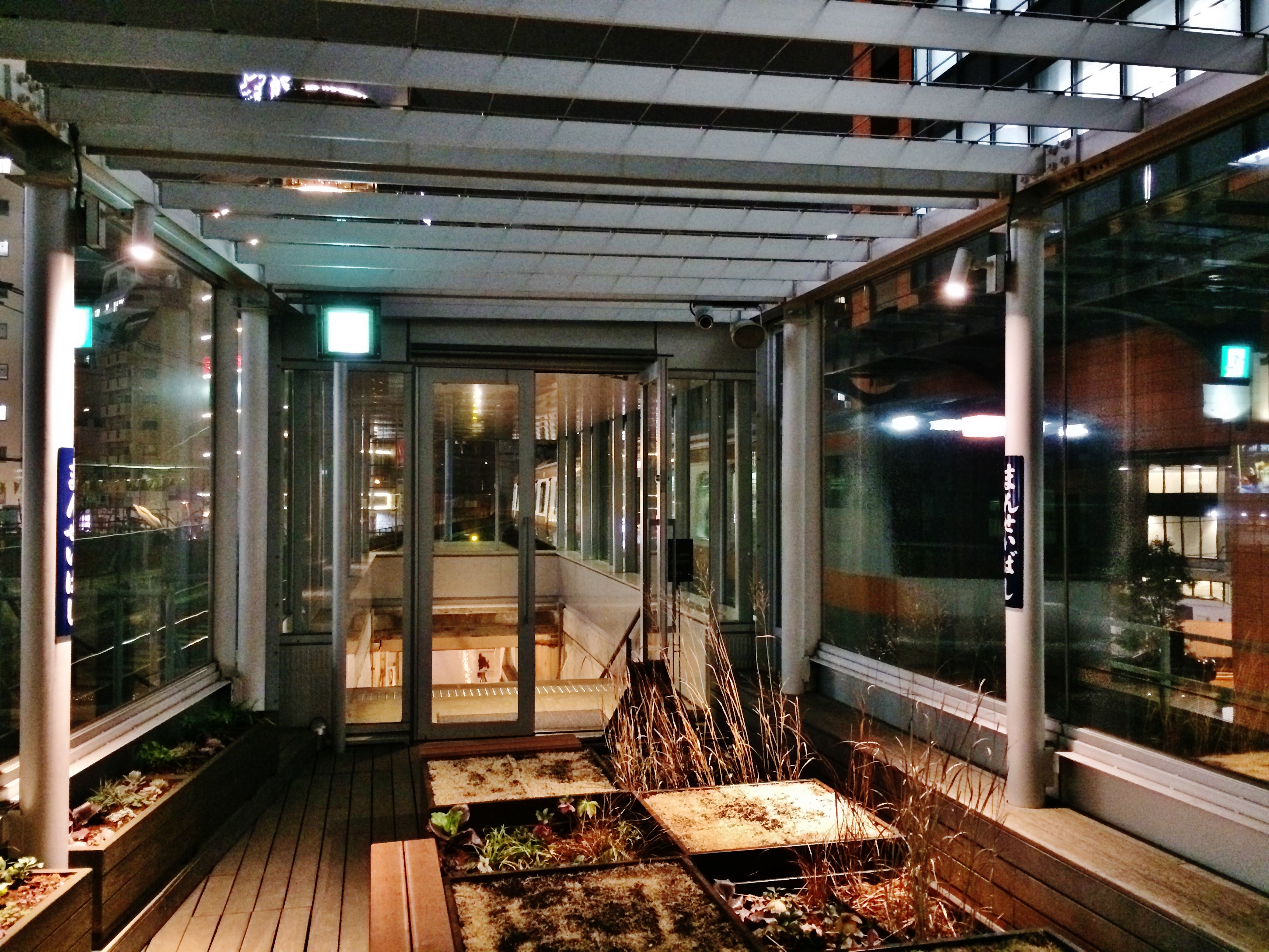 Train-watching platform at mAAchi ecute (former train station), next to the Kandagawa River, near Akihabara. See: My favorite Tokyo places: old Manseibashi Station 万世橋駅遺構