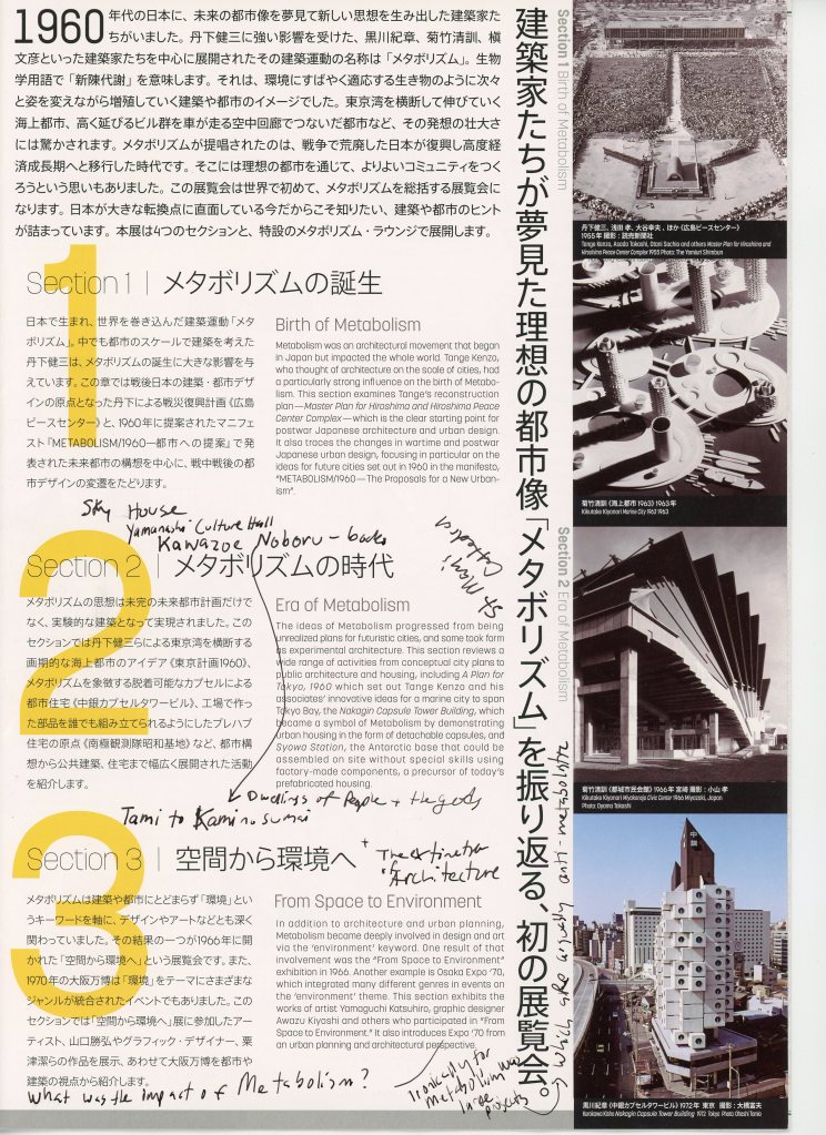 The Mori Art Museum 森美術館 in Roppongi Hills held a fantastic exhibit in 2011 titled Metabolism: The City of the Future – Dreams and Visions of Reconstruction in Postwar and Present-Day Japan at the Mori Art Museum.