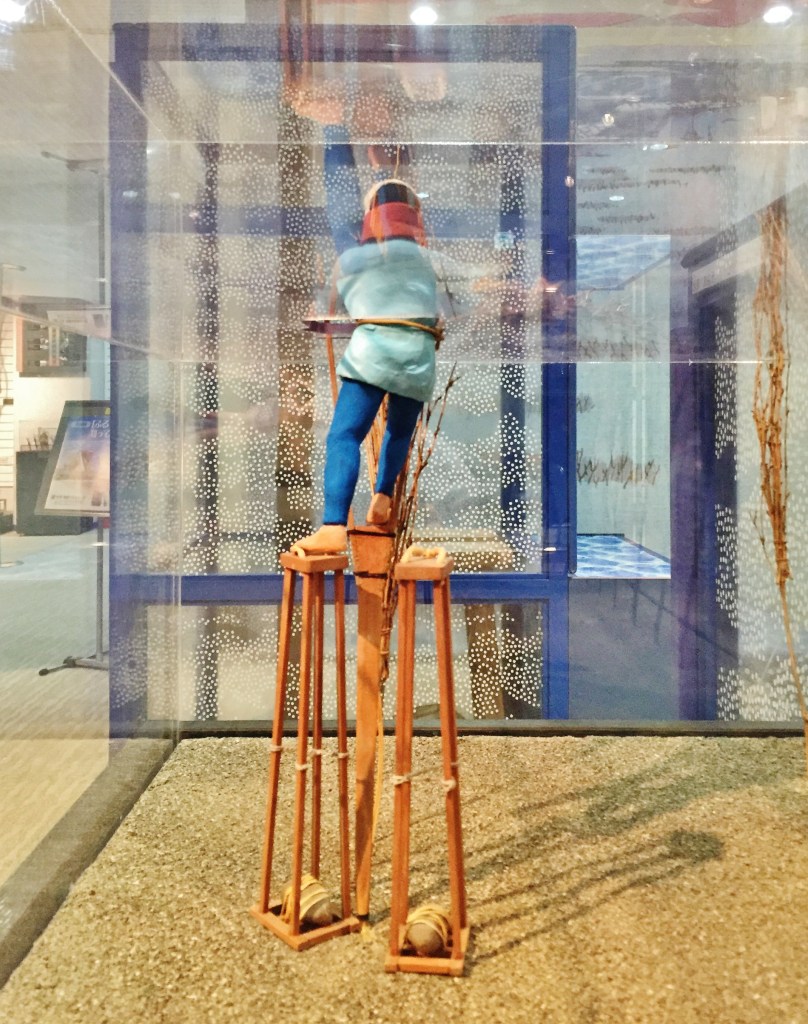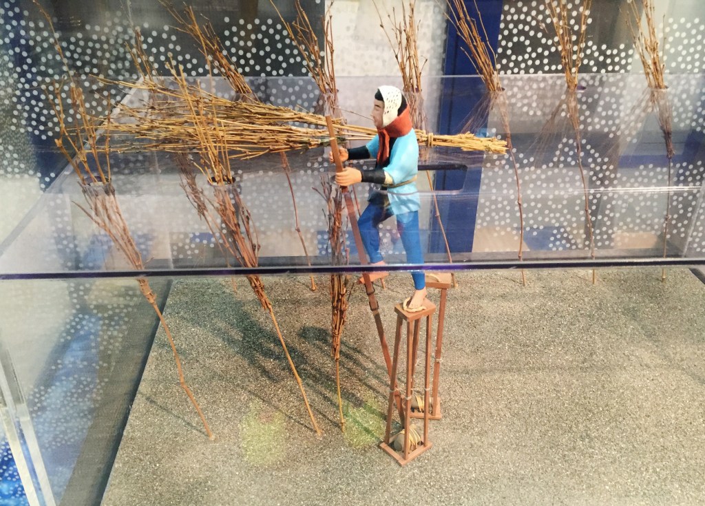 As seen in the diorama, the seaweed farmer stands on stilts called 海苔下駄 nori geta ノリゲタ, which literally means ‘seaweed sandals’. The top of the norigeta is practically identical to the top of a regular geta 下駄 sandal.