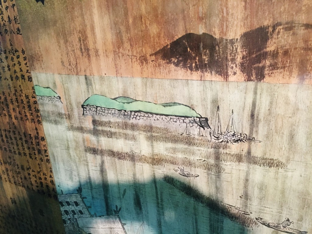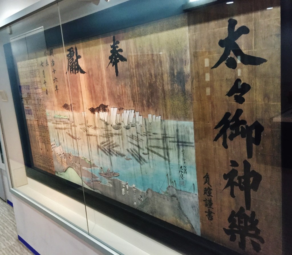 The Omori Nori Museum has a large painting of nori harvesting off the coast of Ota-ku. In the picture (below, second), one of Tokyo Bay’s daiba defensive islands is visible, in front of what I first assumed to be sea grass. These ‘grasses’, however, are evidence of seaweed farming.