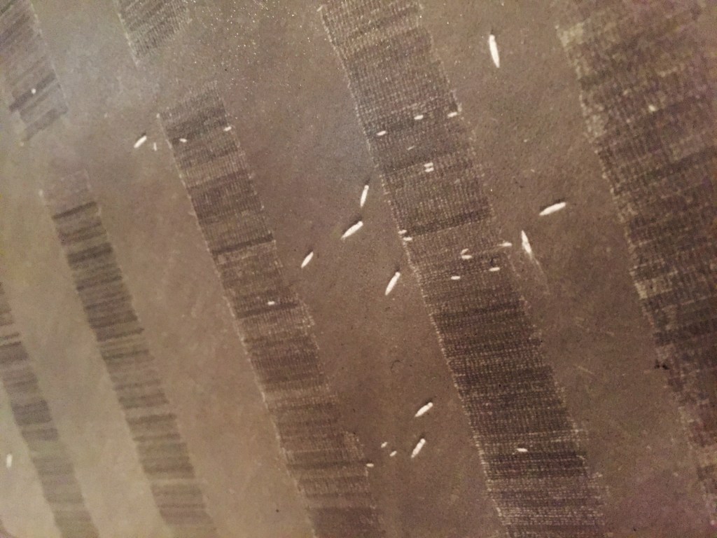 I’ll give you the answer quickly, courtesy of the Omori Nori Museum 大森 海苔のふるさと館 (map), which is located in Omori 大森, the section of Ota-ku adjacent to the original coastline . The museum has a large aerial photograph of Tokyo Bay which explains that these hash marks are fishing nets used in the farming of nori 海苔 (seaweed). The photo is so detailed we can see the small boats attending to the nets.